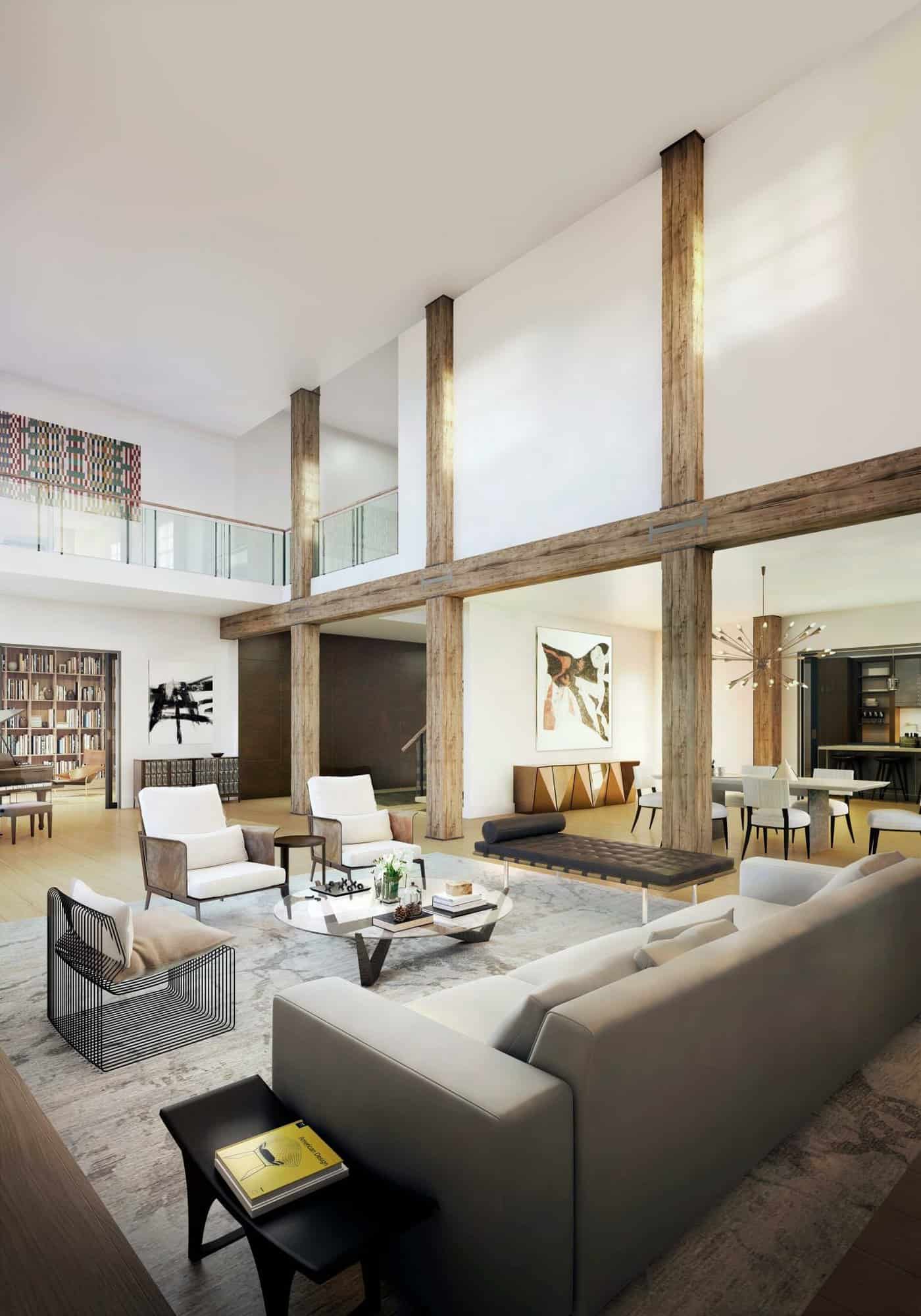 وتتضمن تفاصيل التصميم عوارض من خشب الصنوبر مع تركيبات فولاذية و17 نافذة مرممة، وتشمل وسائل الراحة مسبحاً داخلياً بطول 70 قدماً وصالة رياضية مع غرف خلع الملابس، وحماماً تركياً وتراساً على السطح بمساحة 5000 قدم مربعة.