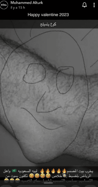 ونشر محمد الترك صورة عبر حسابه على “سناب شات“، تُظهر وجهاً مرسوماً على قدم، وشكل الذقن مثلث، تماماً مثل دنيا بطمة.