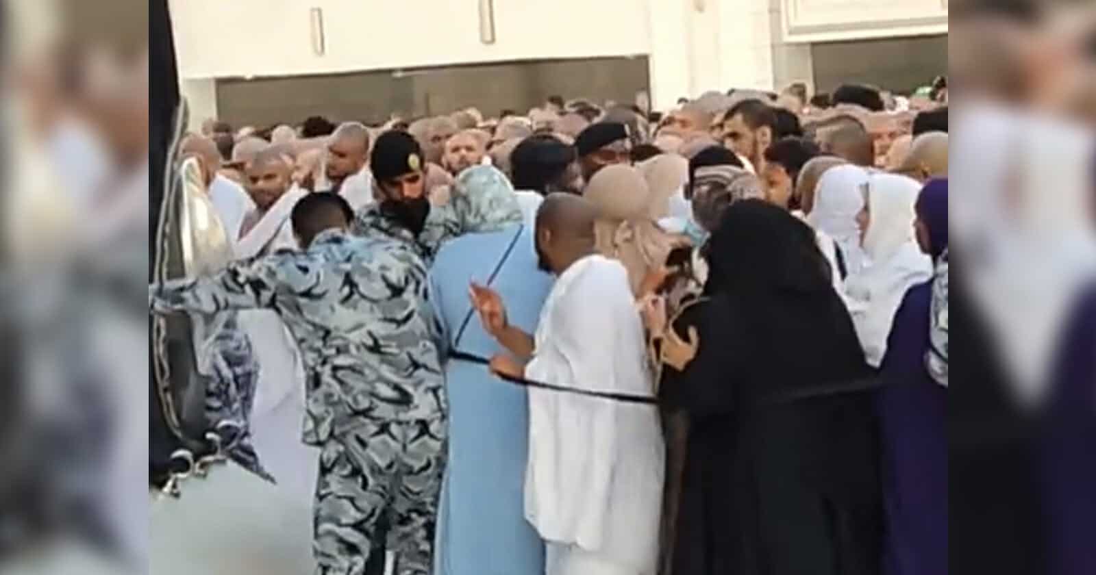 وأثيرت ضجة بعدما شوهدت النساء وهن على مسافة قريبة للغاية من الرجال، وسط حالة من التدافع الشديد، فيما شوهد رجال الأمن وهم يحاولون السيطرة على الوضع.