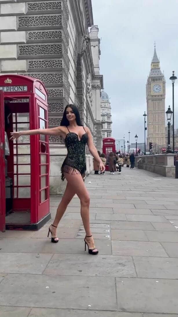 وثقت إيفانا أيضًا مقطعًا مع ساعة “بيج بن” في الخلفية، ونشرتها لـ3.5 مليون متابع.