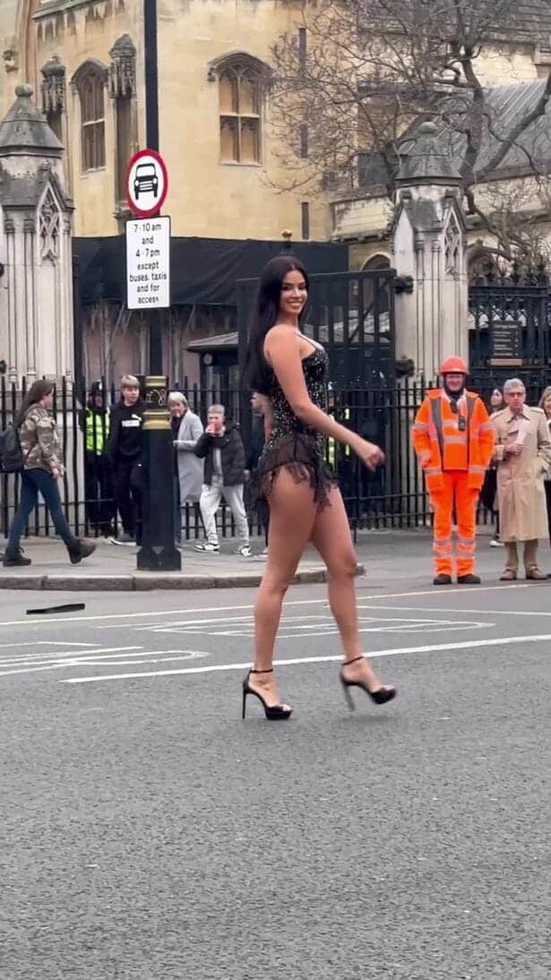 وطن– ألهبت إيفانا نول، ملكة جمال كرواتيا السابقة، شوارع لندن، بملابس بالكاد تغطي شيئاً.