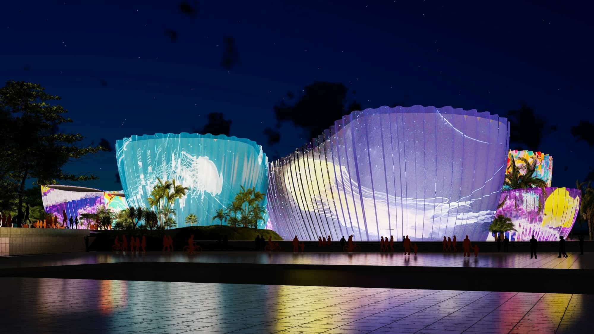 وتشير الحركة المتدفقة على السطح الخارجي إلى الأشرعة البيضاء، بينما تمنح رؤية التموجات اللامعة من الداخل لتحاكي قشور الأسماك وانعكاس الشمس على المياه المتحركة.