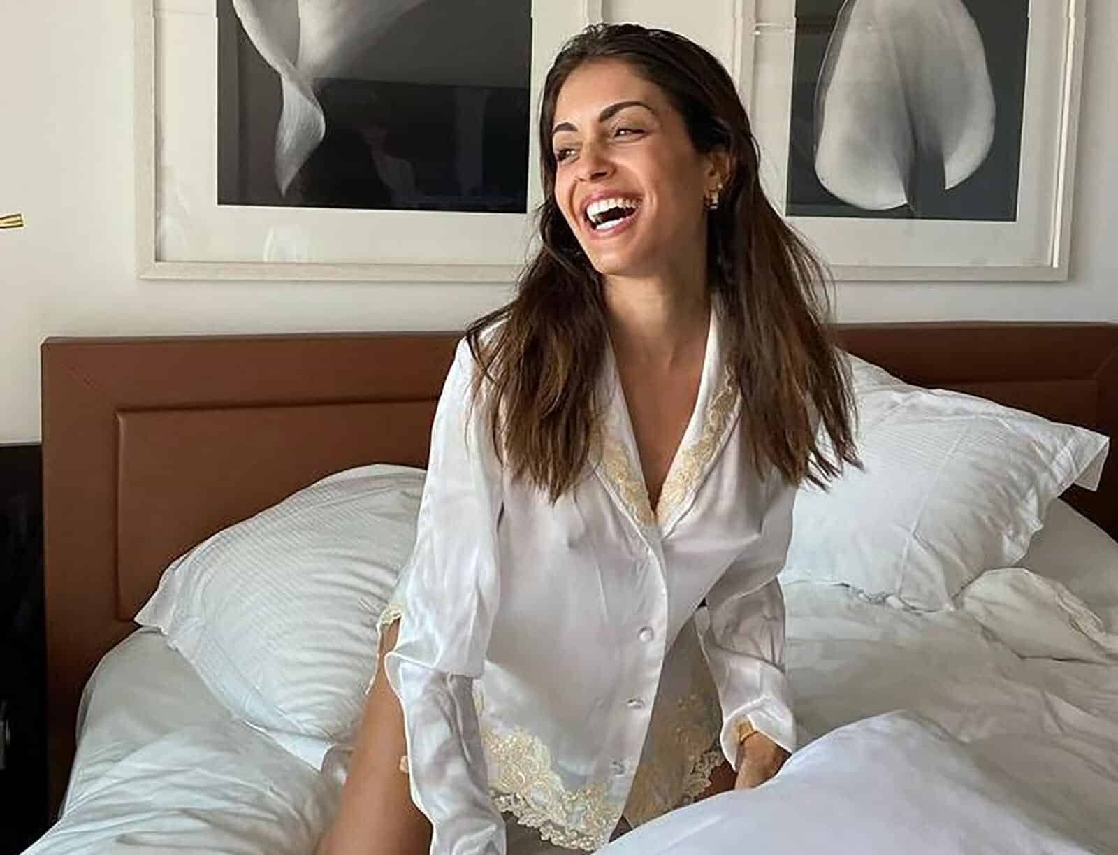 للحصول على قسط جيد من الراحة، من الأفضل أن يكون لديك غرفة نوم غير مزدحمة، وإذا أمكن، بديكور بسيط للغاية. يبدو أن هبة عبوك تلبي هذه التوصية، ونرى أن غرفة نومها الرئيسية عبارة عن غرفة مضاءة جدًا بالضوء الطبيعي، مدعومة باللون الأبيض النقي للجدران واللوحات.