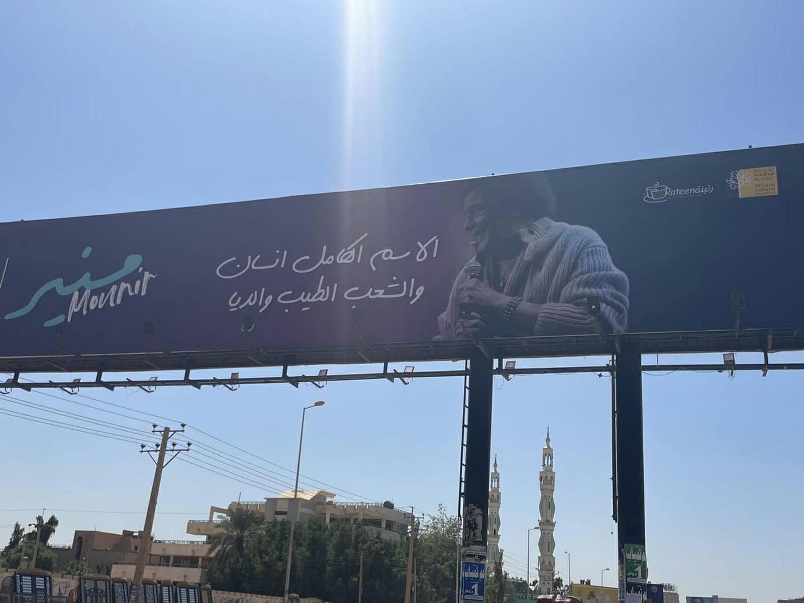 وأظهرت لافتة كبيرة على امتداد عرض أحد الطرقات في السودان نشرها نشطاء على مواقع التواصل الاجتماعي حفاوة وترحيباً مميزاً بـ “الكينغ” كما يلقبه السودانيون وقد نشرت فيها صورته وإلى جانبها عبارة “الاسم الكامل انسان والشعب الطيب والدي” وإلى جانبها اسم منير بالعربي والإنجليزي.