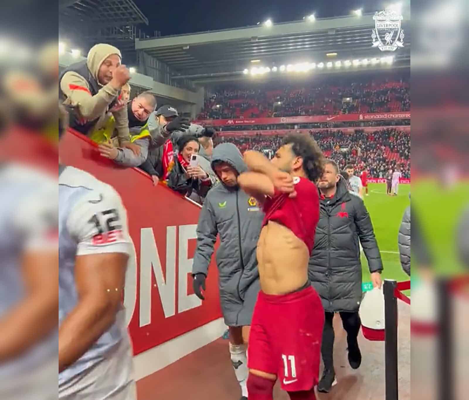 نجم ليفربول محمد صلاح يخلع قميصه لمعجبة