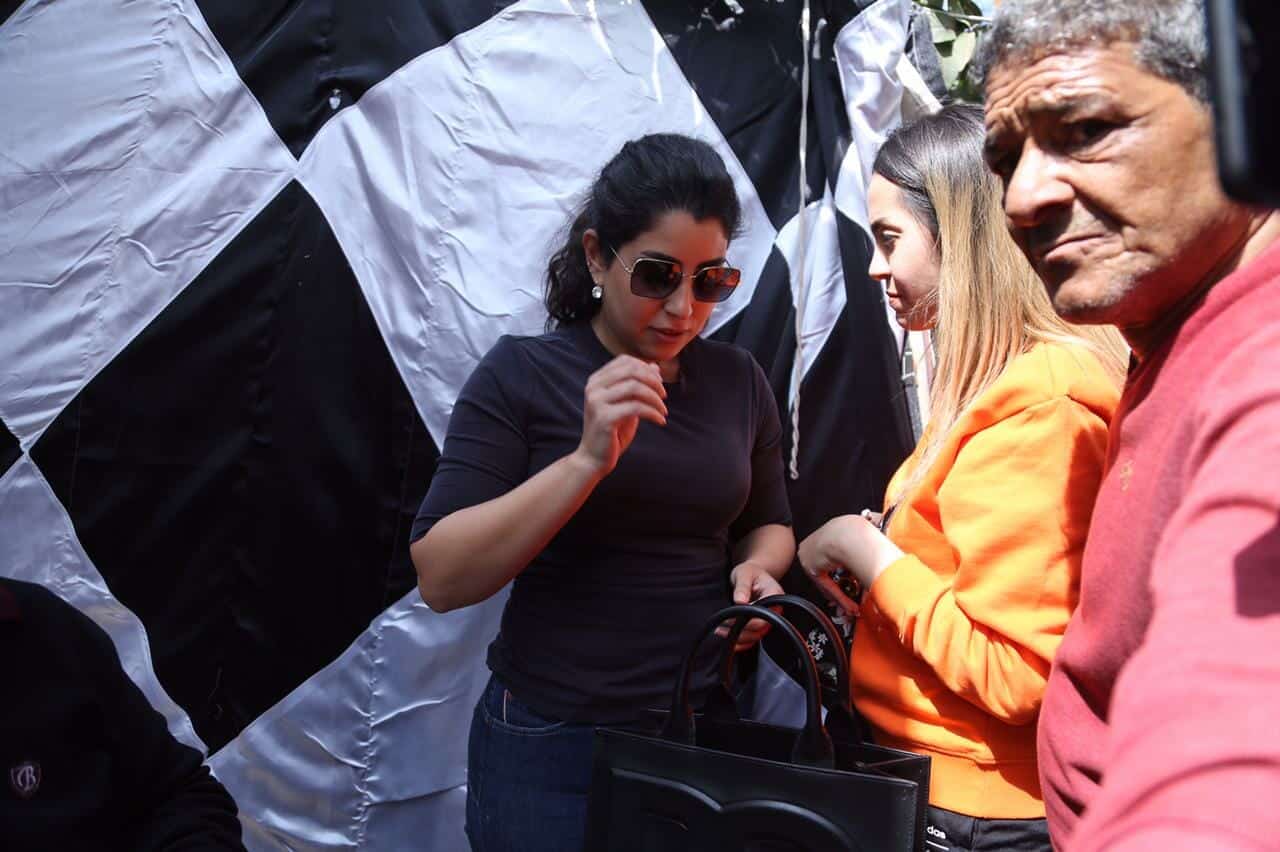 وغطّت آيتن عامر عينيها بنظارات سوداء، ما أثار الشكّ حول إصابتها برضوض بعد المشاجرة التي وصلت إلى قسم الشرطة في مدينة الشيخ زايد.