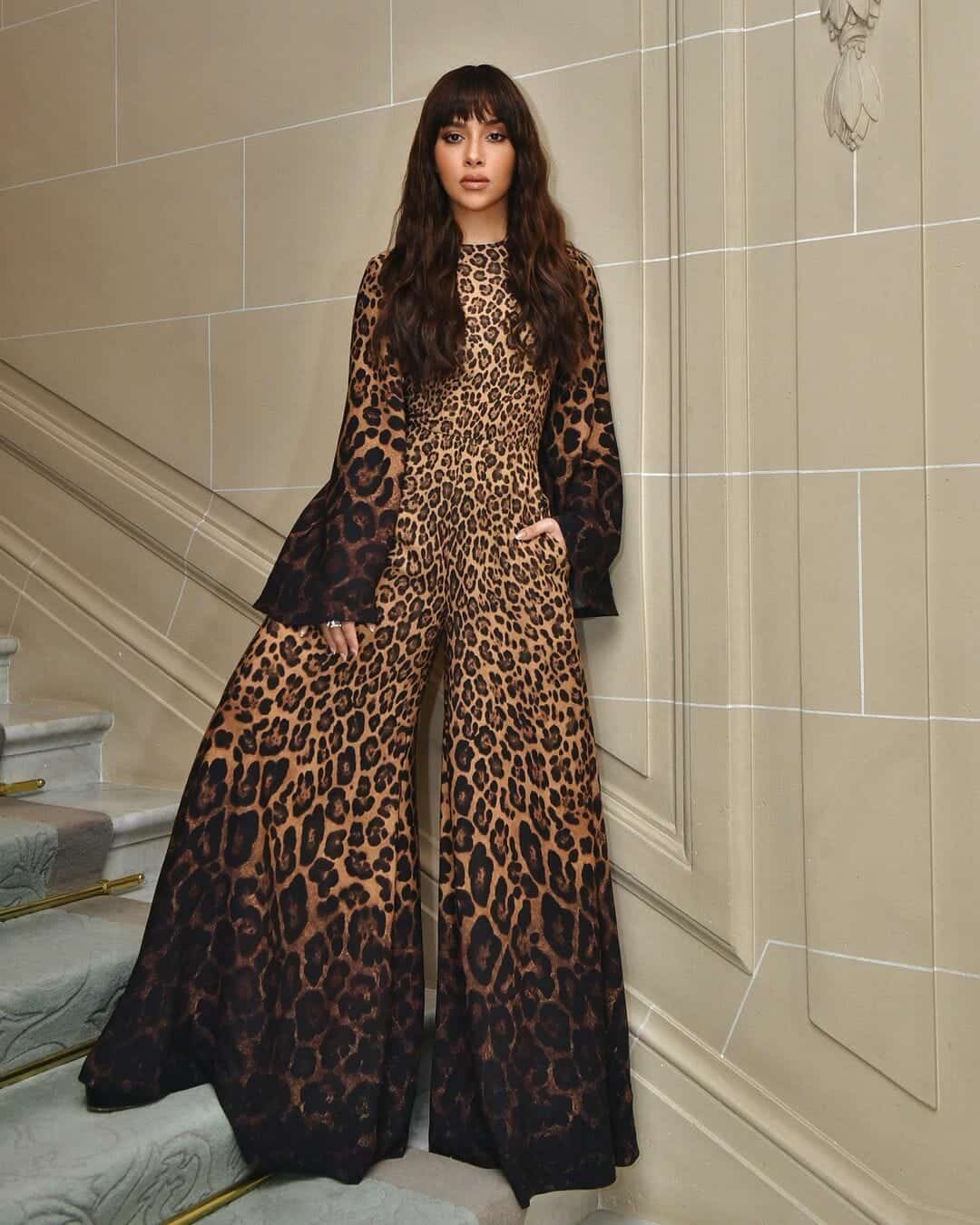 أثارت بلقيس فتحي الجدل بارتدائها جمبسوت بنقشة النمر بتصميم غريب