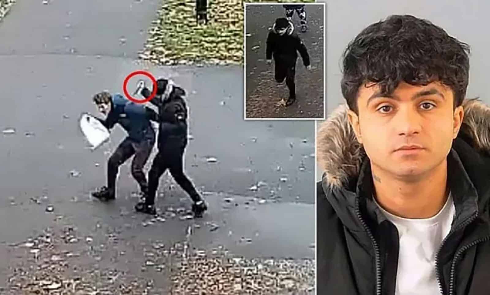 وأظهر اللقطات الشاب العراقي محمد، وهو يسحب سكين مطبخ من معطفه قبل أن يندفع إلى ظهر الشاب البالغ من العمر 18 عامًا، ويطعنه في ظهره في وضح النهار.