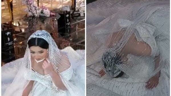 وأثارت زوجة حسن شاكوش الجدل، بسجودها لحظة دخولها قاعة الزفاف في أحد فنادق القاهرة الكبرى، شكراً لله على زواجها من مطرب المهرجانات.