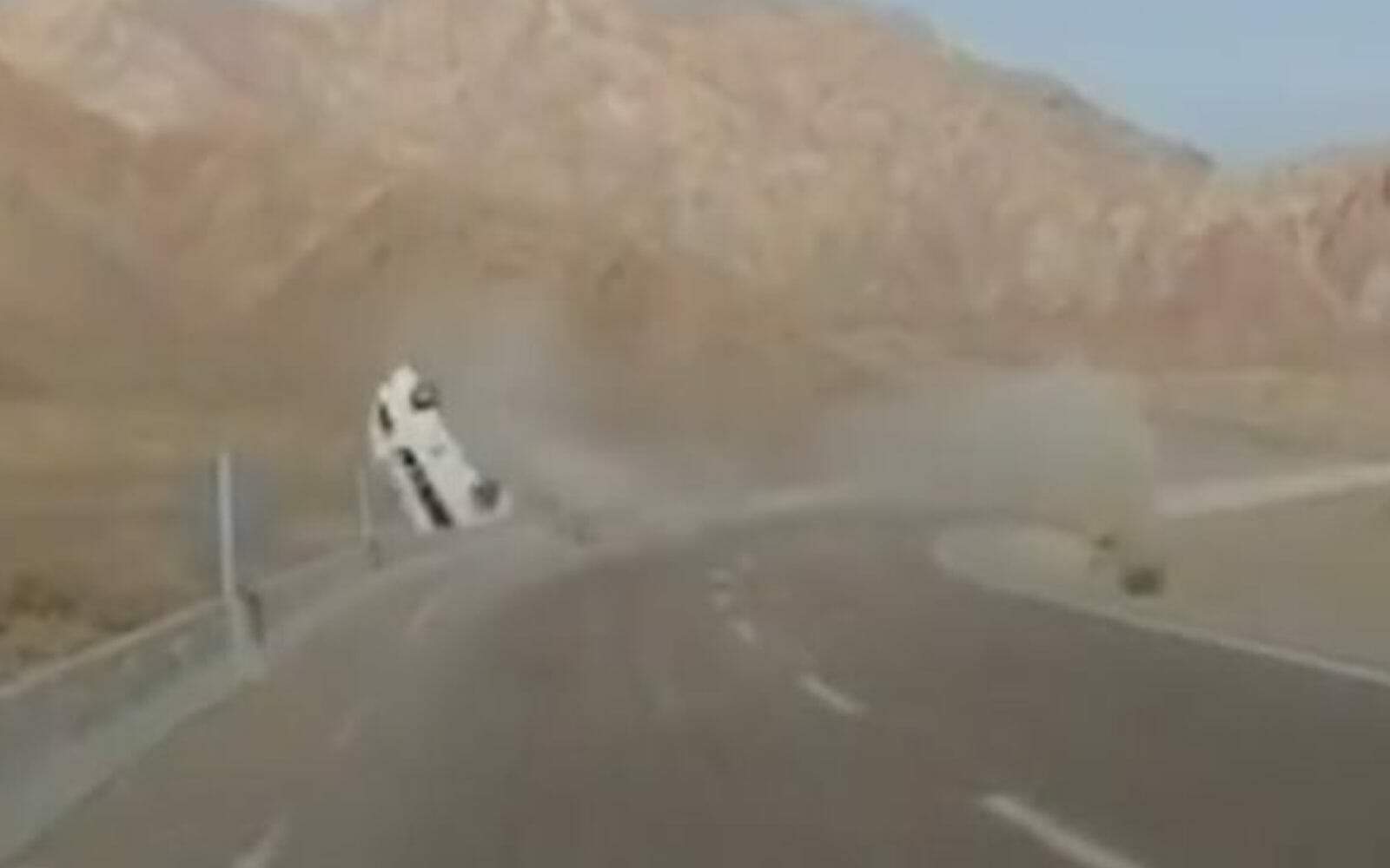 في مقطع الفيديو، سُمع شخص يحذّر من خطورة هذا الطريق، بسبب الحصى الموجودة على الأرض، لكن من الصادم أنه في غضون ثوانٍ معدودة، ظهرت سيارة ميكروباص (أجرة) تسير بسرعة جنونية، فيما فقد سائقها السيطرة عليها، حتى انقلبت بجانب الطريق بشكل مفزع.