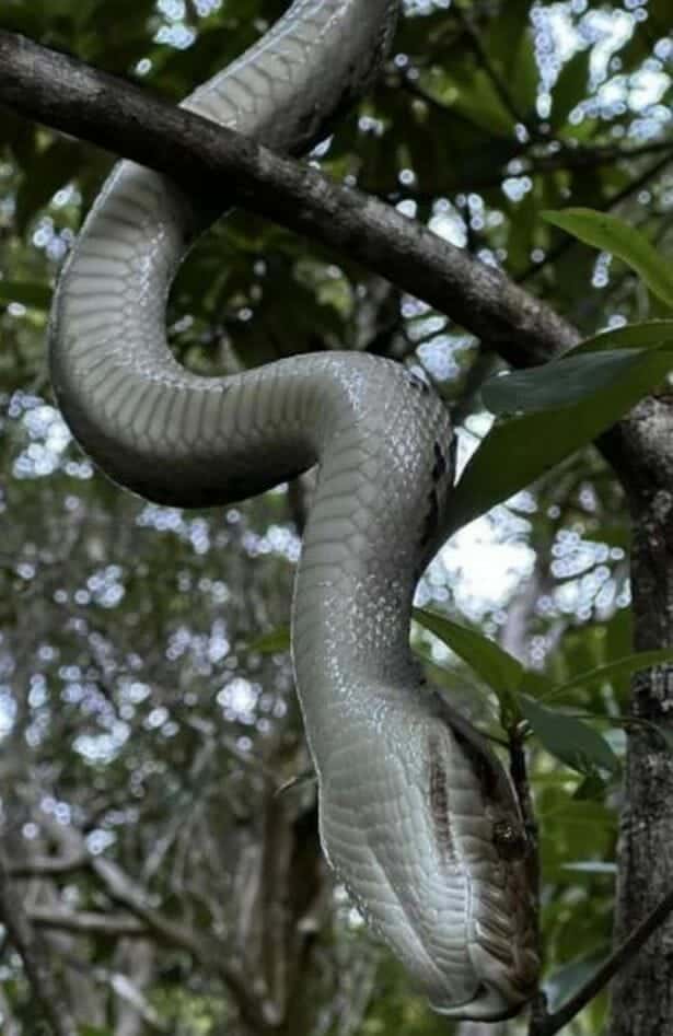 من الصور التي التقطها جويل، تمّ تحديد الثعبان على أنه ثعبان البيثون غير السام.