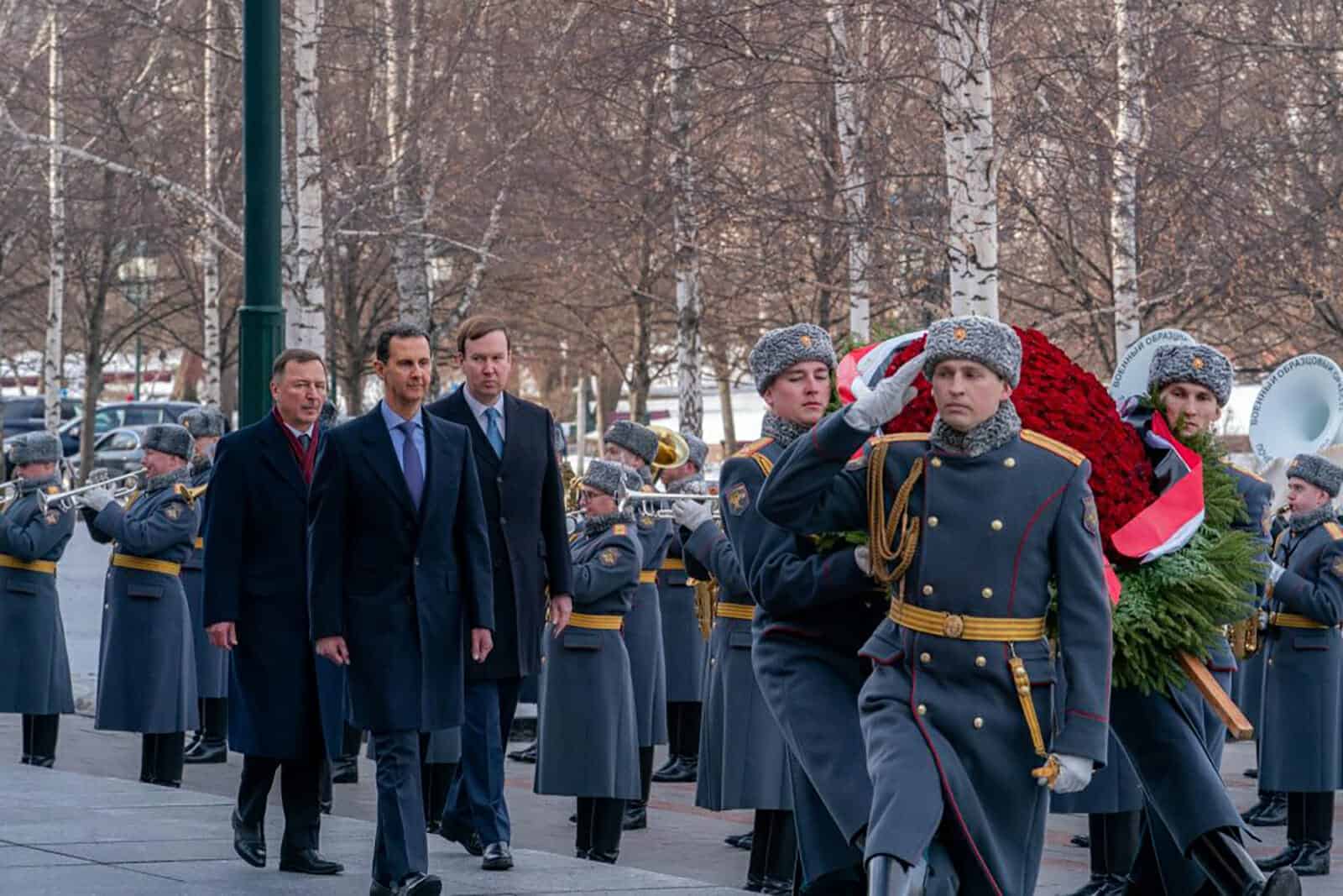 فضيحة لبشار الأسد خلال وضعه إكليل الزهور على على قبر الجندي المجهول في الكرملين أثناء زيارته لروسيا