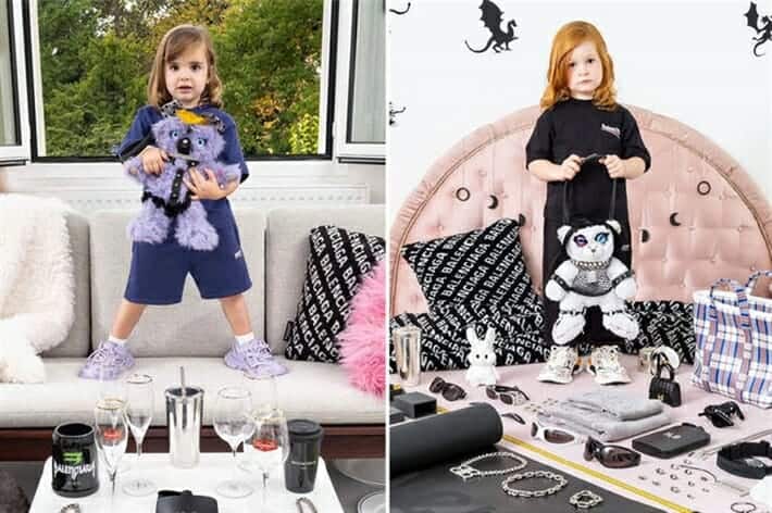 وحملت الحملة اسم “محل هدايا بالنسياغا”، مرفقة بصور أطفال يحملون حقائب “دمى مدببة” ذات عيون دامية. وملابس خليعة وقمصان شبكية متعلقة بالسادية المازوخية. بالإضافة إلى كؤوس خمر.
