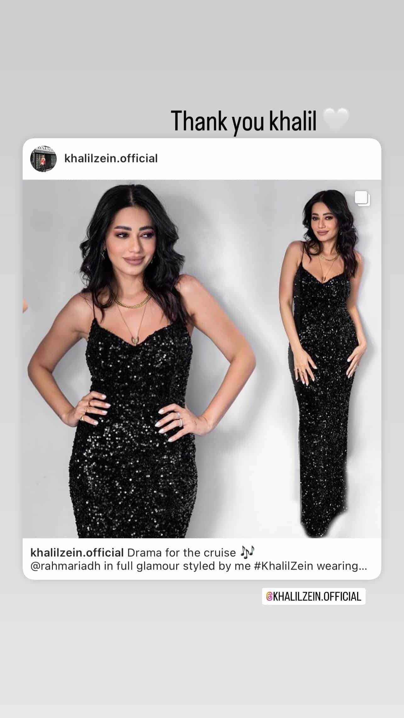وتألّقت رحمة رياض بفستان أسود طويل لامع بدون أكمام، مع فتحة صدر بسيطة.