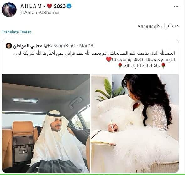وطن- ادّعى شاب سعودي أنّه قام بعقد قرانه على الفنانة الإماراتية أحلام الشامسي.