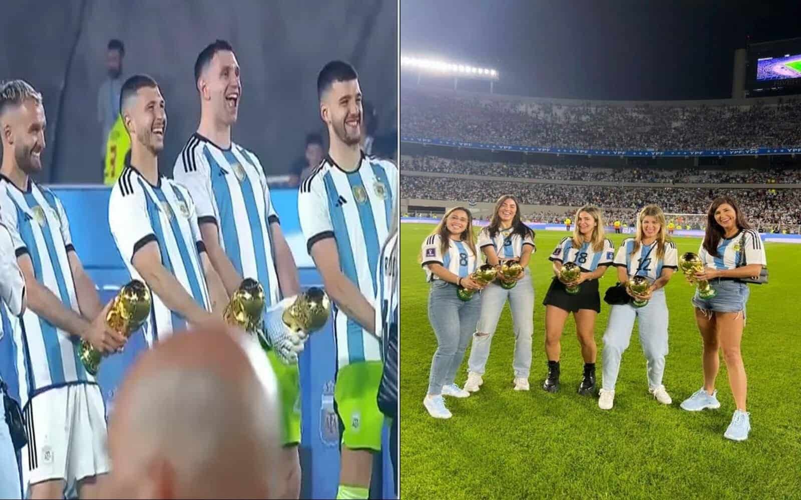 أدى قرار إقامة الاحتفال في المباراة الأولى للأرجنتين أمام جماهيرهم على أرضهم بعد فوزهم بكأس العالم للمرة الثالثة إلى انقسام الآراء بين الجماهير عبر الإنترنت.