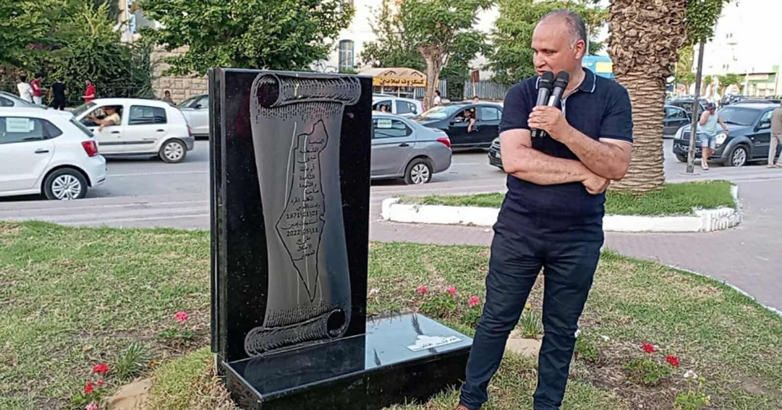 وكتب في منشور عبر صفحته الرسمية بموقع التواصل الاجتماعي «فيسبوك»: “إنه لشعب عظيم، في يونيو 2022، أي بعد شهر من اغتيال الزميلة الشهيدة شرين أبو عاقلة، على يد أحد قناصة جيش الاحتلال الصهيوني، أقامت بلدية بنزرت وجمعية البر والإحسان نصبا تذكاريا للشهيدة بساحة فلسطين (الحديقة الكائنة أمام البلدية، ودار الثقافة الشيخ ادريس)”.