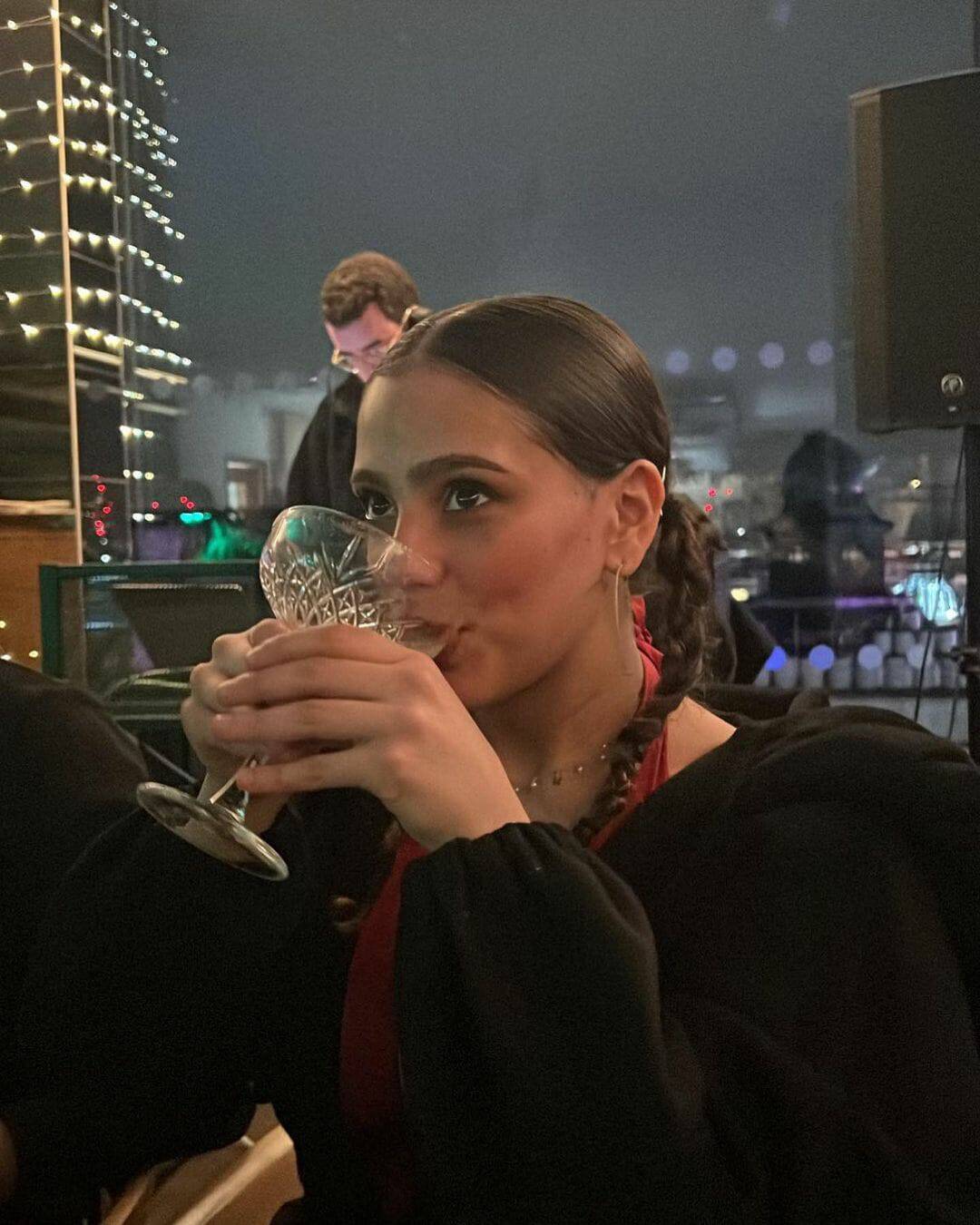 واعتمدت ابنة عمرو دياب تسريحة الضفيرتين، بينما ظهرت بوضعيات غير لائقة مع أصدقائها وفي يدها مشروب أشارت إلى أنه ماء.