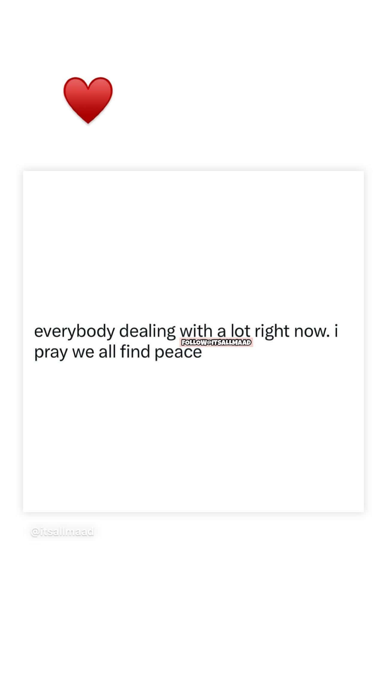 كما كتبت جنا دياب رسالة غامضة عبر خاصية القصص المصورة قالت فيها: “الجميع يمر بالكثير الآن.. أصلي لأن نجد جميعاً السلام”.