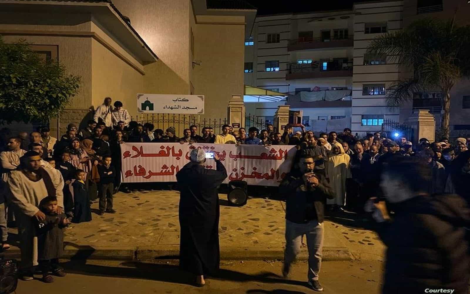 مقطع الفيديو المتداوَل الذي جرى تصويره ليلاً، يُظهر حشوداً تحمل لافتات وتردّد شعارات تستنكر الوضع المعيشي في المغرب.