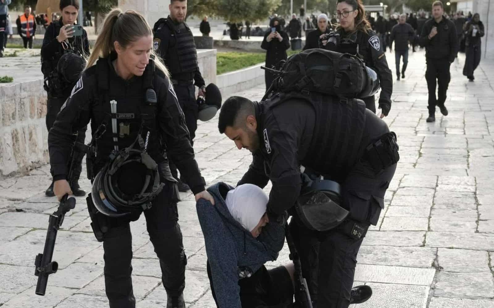 وشوهدت الشرطة وهي تدفع المصلين المسلمين المسالمين، بمن فيهم كبار السن، من سجادات الصلاة، وتجبرهم على مغادرة الموقع، وفي مشاهد أخرى، تمّ تصوير الشرطة وهي تضرب المصلين داخل الأقصى المظلم، فيما سُمعت النساء يصرخن احتجاجاً.