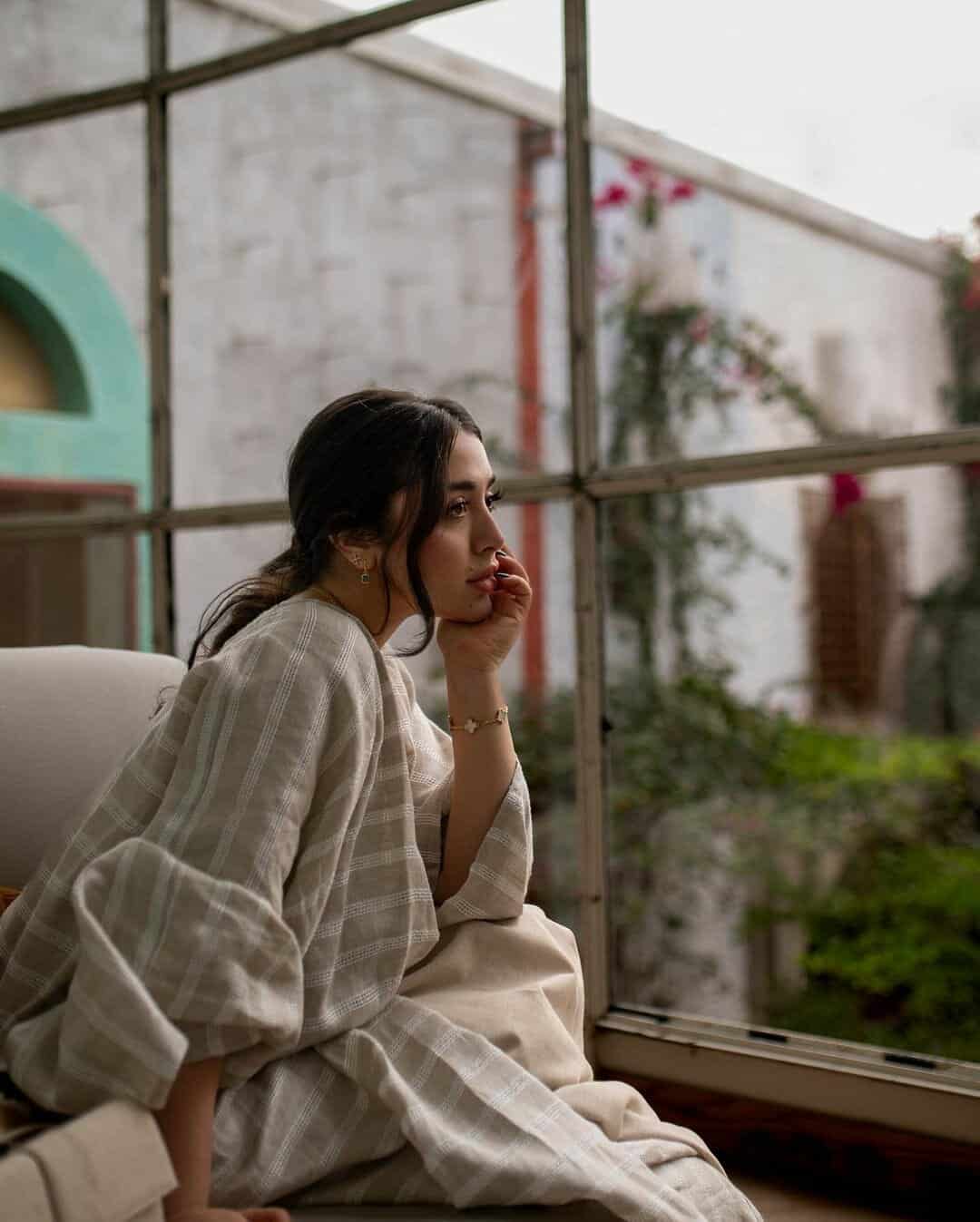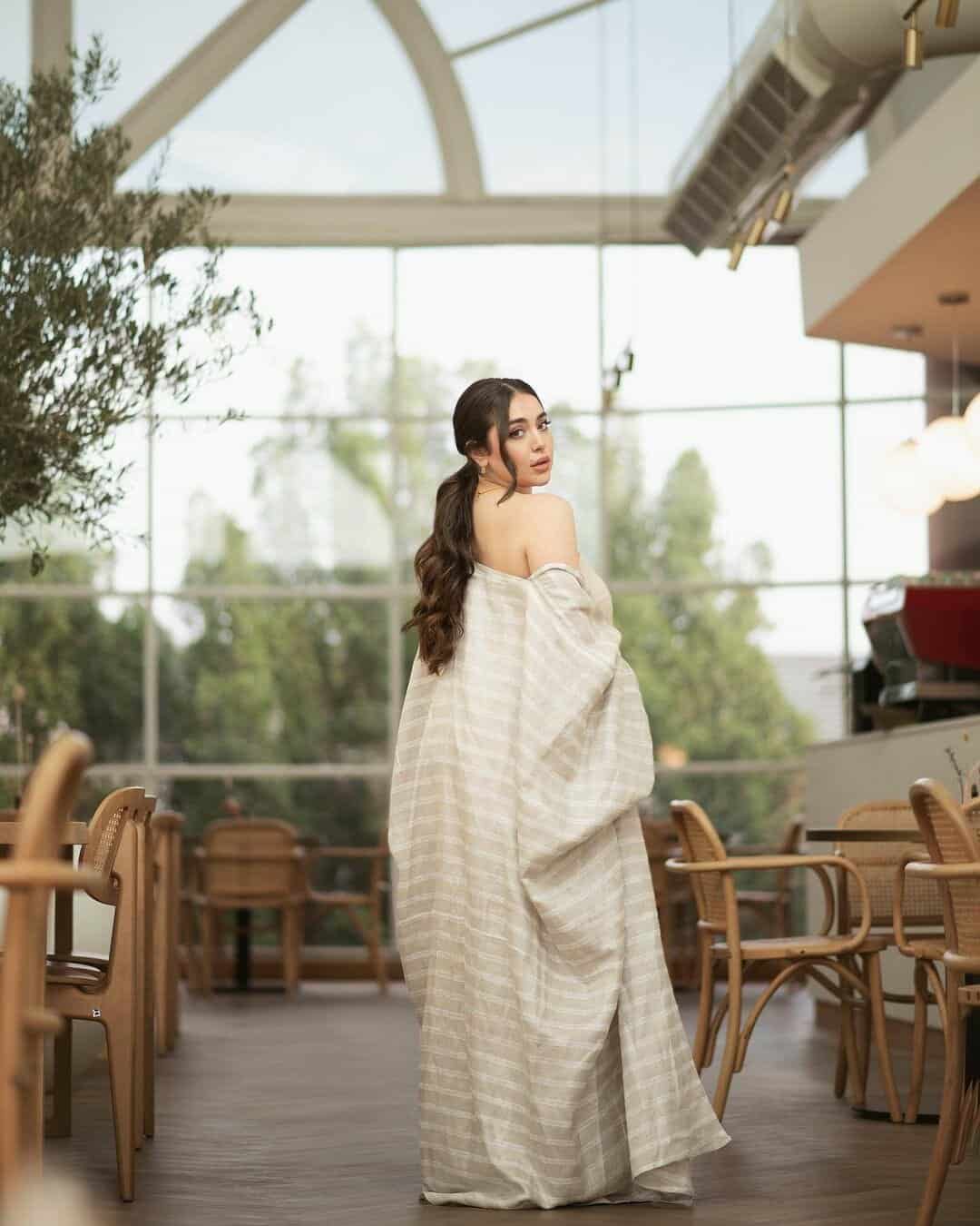 لكنّ الفنانة الشابة المعروفة بجرأتها، قامت بإظهار جزء من كتفها وظهرها في إحدى الصور، وكأنها توحي للمشاهد بأنها لا ترتدي شيئاً تحت العباءة.