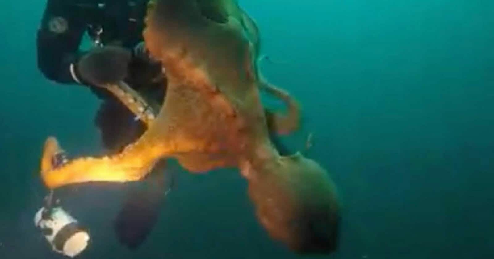 وكتب ماركوت: “بينما كنت أصور الحركة المهيبة لهذا الوحش الجميل، بدأ يهتم بكامرتي الخاصة، لقد حاول انتزاعها من يدي”. وشعر الأخطبوط بالملل بعد ثوانٍ وسبحَ بعيدًا.