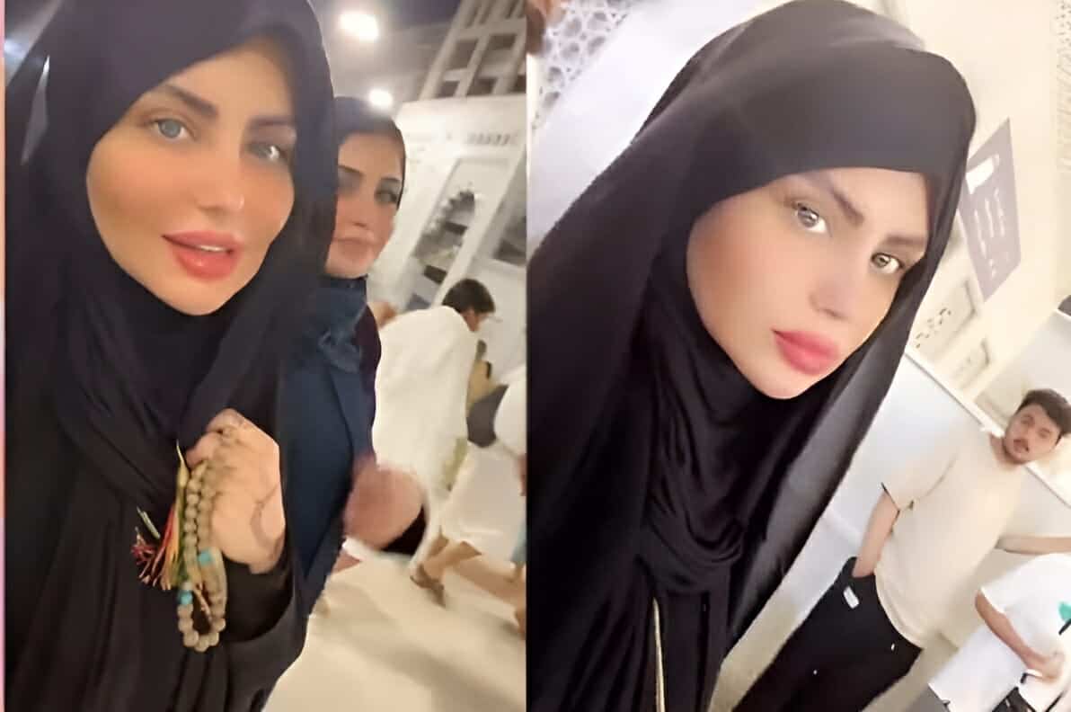 ووثّقت حليمة بولند العمرة التي أدّتها برفقة صديقتها التي تدعى حنان، مرتديةً عباءة سوداء وغطاء رأس لم تضعْه بشكل جيد.