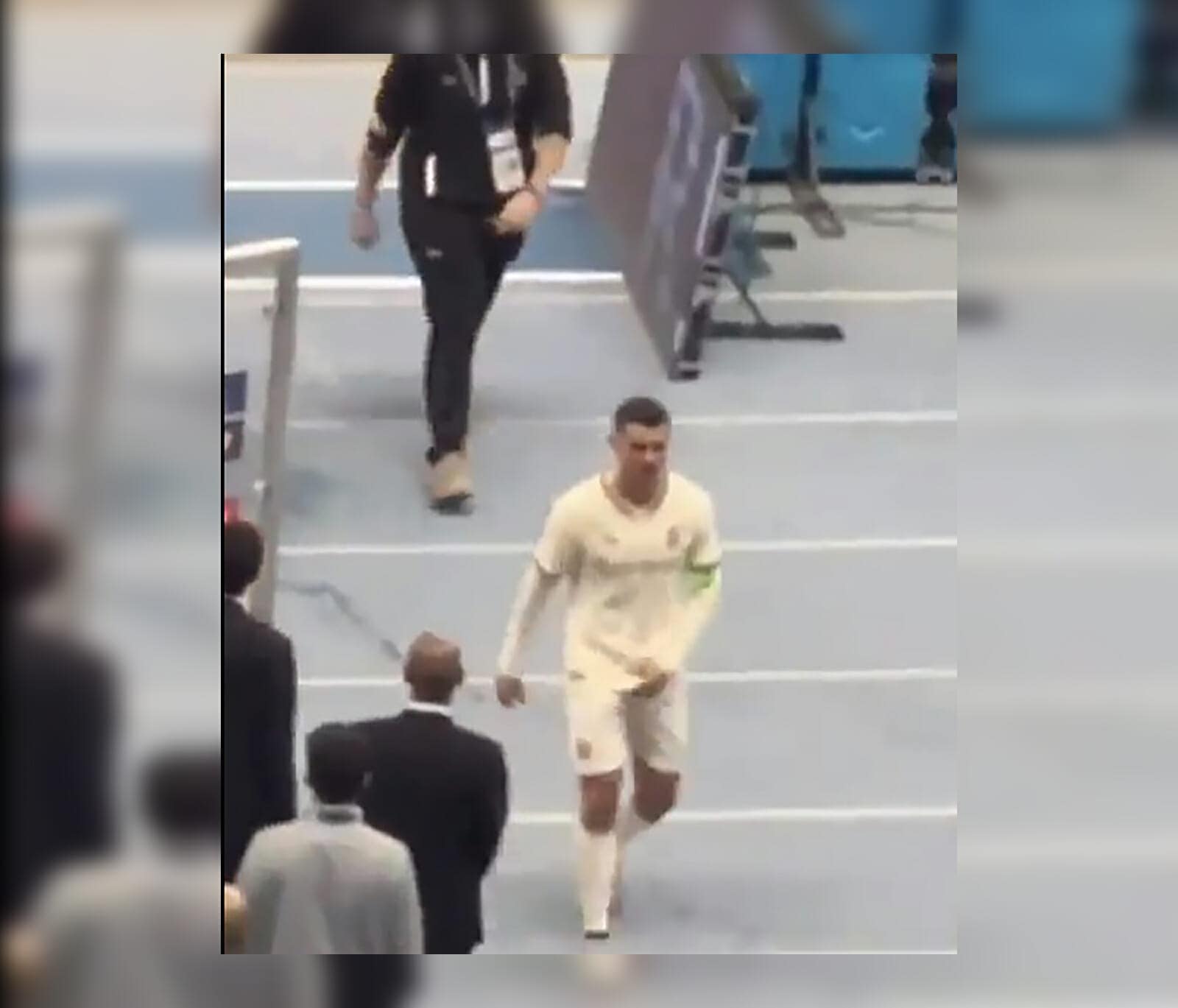 وعقب انتهاء المباراة، ومع خروج كريستيانو رونالدو من الملعب متوجّهاً إلى غرفة تبديل الملابس، تعالت أصوات الجماهير الهلالية وهي تهتف باسم “ميسي” في وجهه، ليردَّ عليهم “رونالدو” بإيماءة ممسكاً قضيبه نحوَهم.