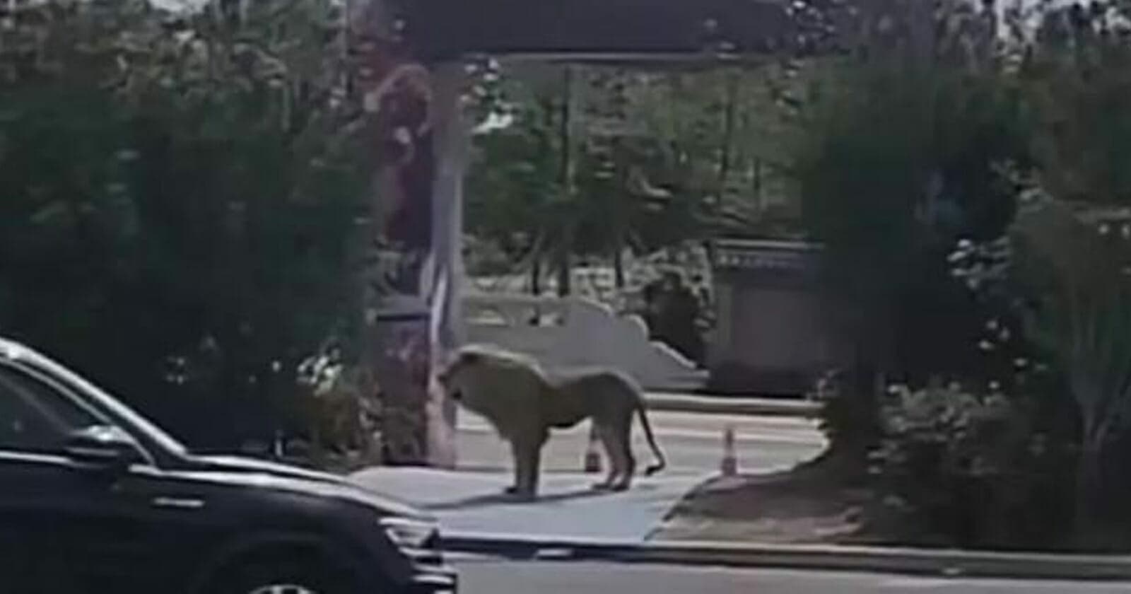 ثم يظهر أحد الأسود وهو يتجوّل في موقف السيارات عندما يخرج الزوار من المكان.