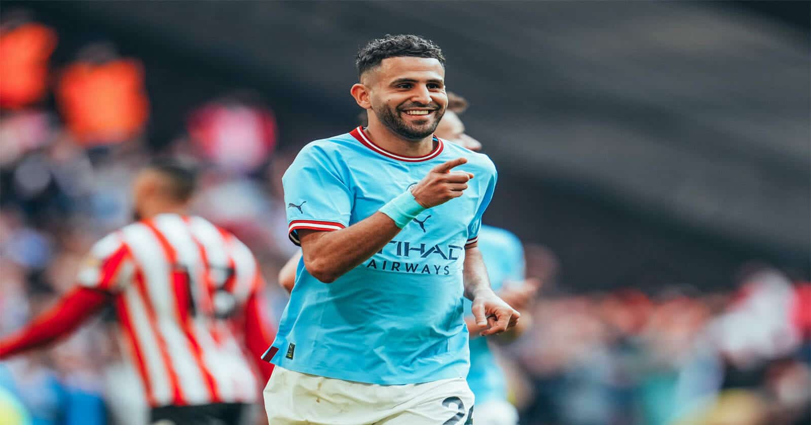 وطن- عايدة النجم الجزائري رياض محرز جماهير مانشستر سيتي، بتسجيله الهاتريك داخل شباك مرمى منافسه شيفيلد يونايتد، وقيادة فريقه إلى نهائي كأس الاتحاد الإنجليزي 2022-2023.