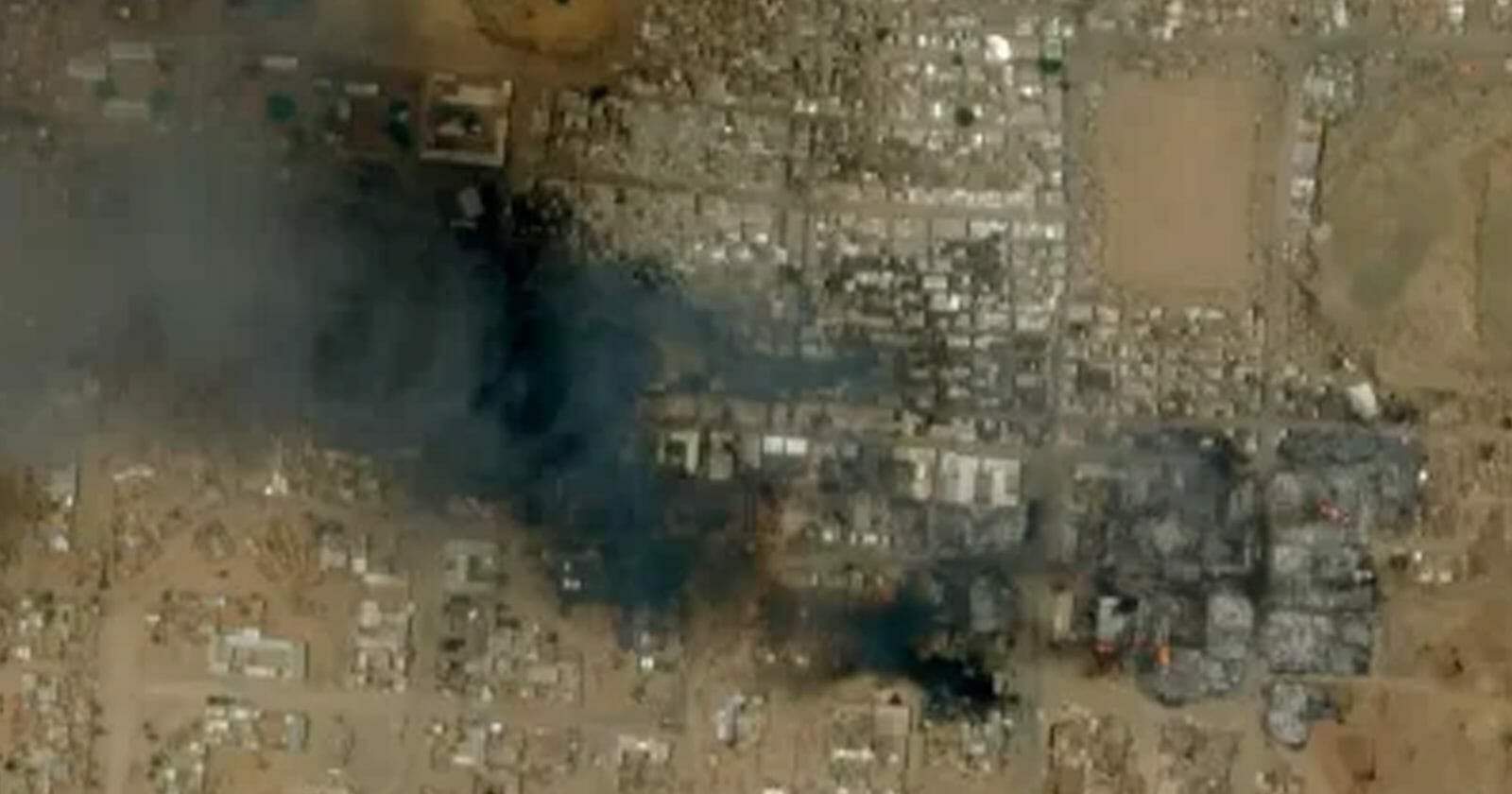 وأظهرت صورة التُقطت عبر الأقمار الاصطناعية حرائق مشتعلة، وتحوُّل متاجر صغيرة في الجانب الشرقي من السوق إلى رماد، ونيران تلتهم أبنية أخرى.