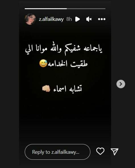 وعبر خاصية القصص المصورة على “انستجرام”، قالت زينب الفليجاوي: “يا جماعة ايش فيكم.. والله مو أنا اللي طقيت الخدامة.. تشابه أسماء”.
