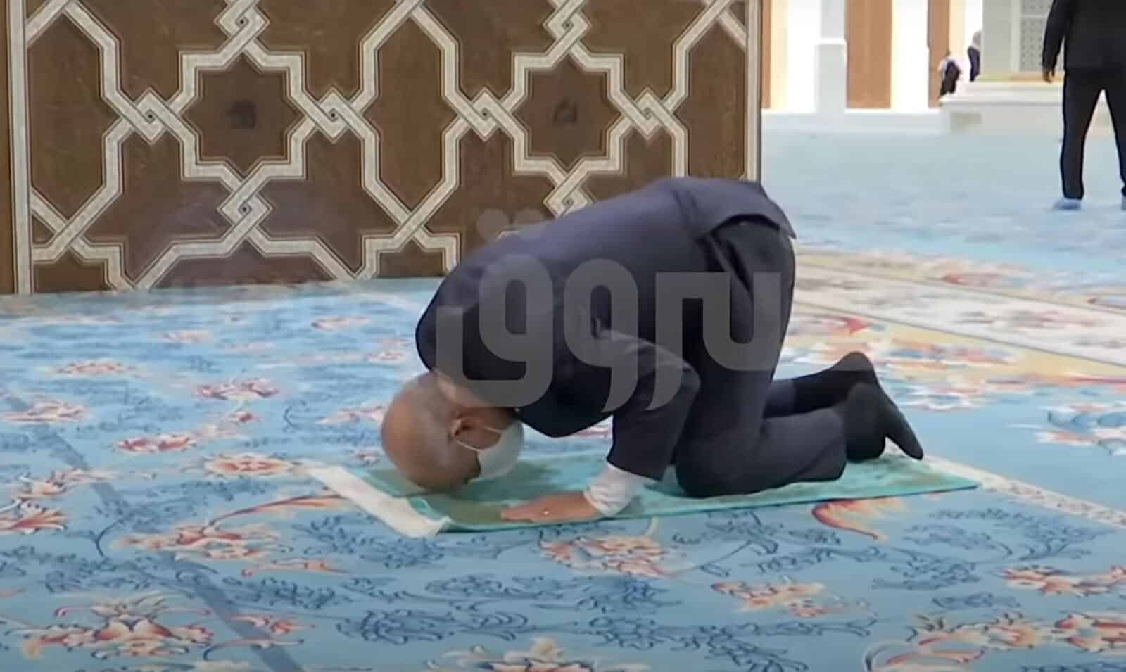 وظهر في الفيديو الرئيس الجزائري عبد المجيد تبّون واضعاً قناعاً طبيّاً وهو يؤدي الصلاة لوحده داخل مسجد فسيح.