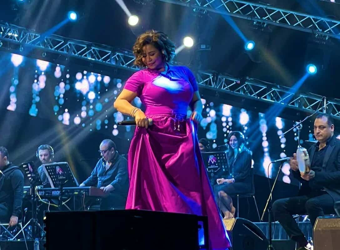 لكن، وخلال غنائها تعثّرت شيرين على المسرح وسقطت أرضاً، ليسارع بعض من كانوا على المسرح لمساعدتها.