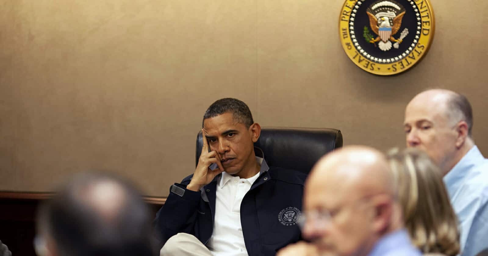 وظهر فيها كلٌّ من الرئيس السابق أوباما والرئيس الحالي جو بايدن -كان وقتها مستشاراً لأوباما- وزوجة الرئيس السابق هيلاري كلينتون، ومستشارون آخرون في غرفة العمليات، وهم يركّزون على عملية أفغانستان.