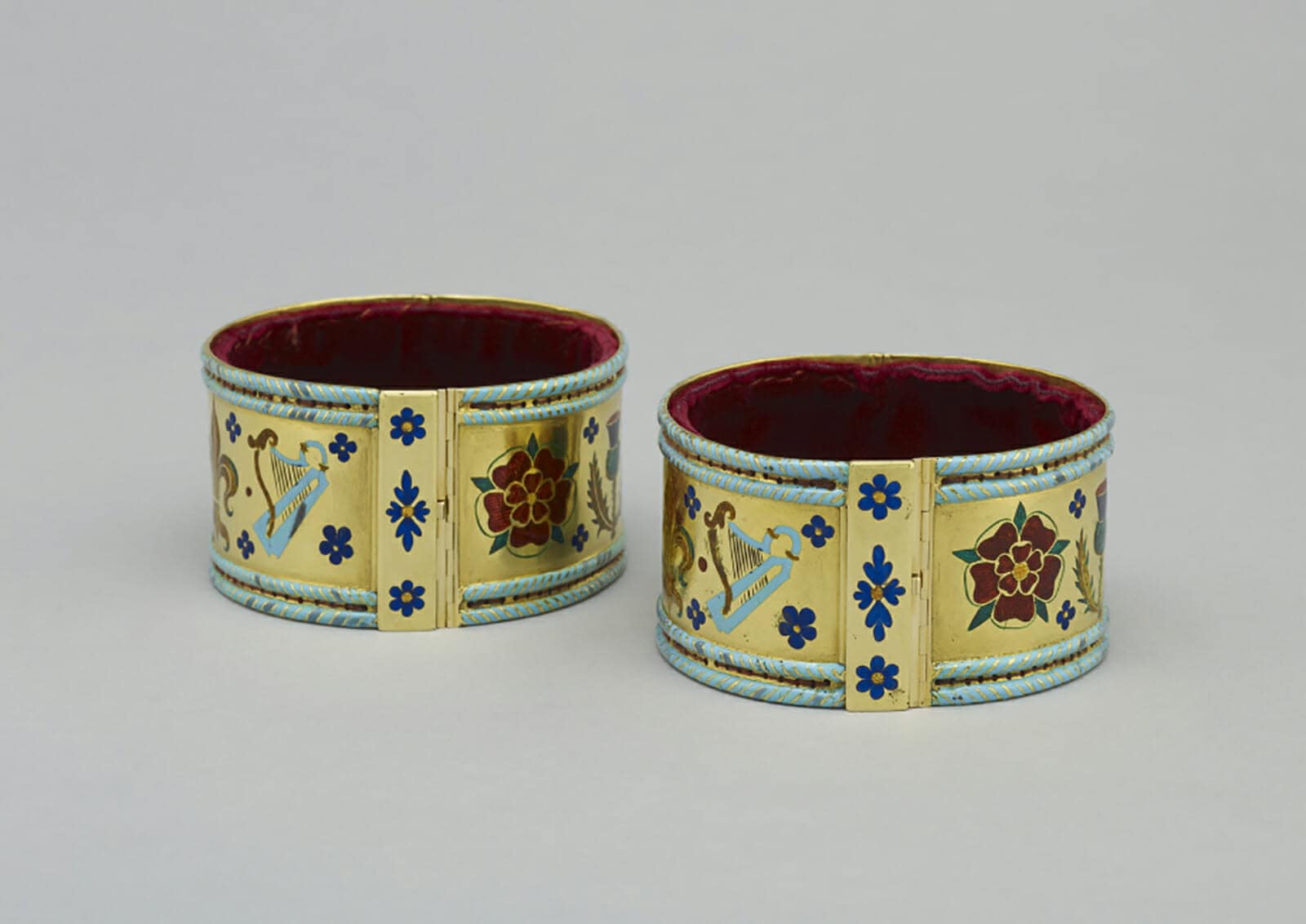 إسوارة المعصمين المصنوعة من الذهب والمُطعّمة بالمينا والمبطنة بالمخمل