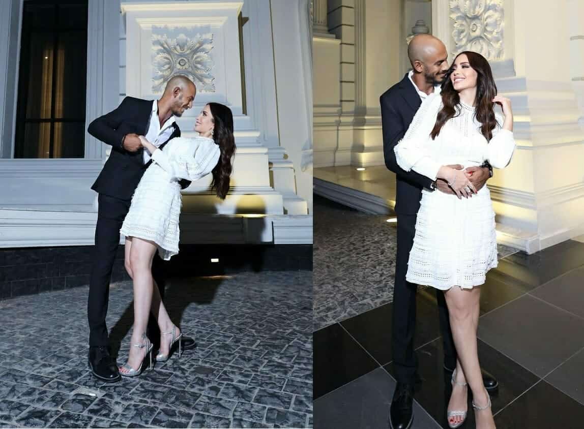 وظهرت نسرين طافش في الصور التي نشرتها على حسابها الرسمي في انستغرام، وهي في أحضان زوجها طبيب الأسنان والمعالج بالطاقة، مرتديةً فستاناً قصيراً.