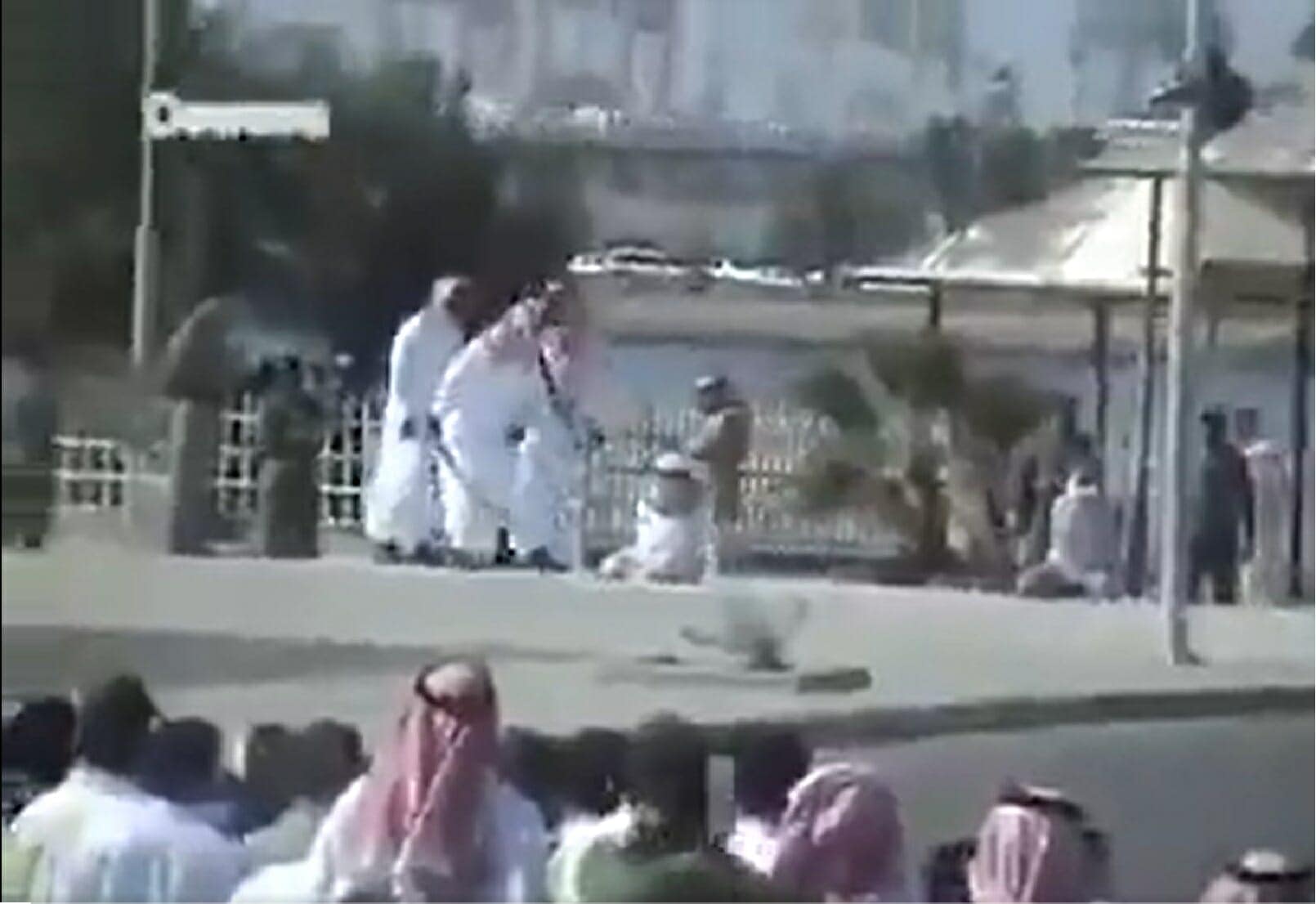 وبحسب الفيديو المتداول، فقد ظهر ثلاثة من المتهمين في إحدى الساحات وقد تمّ تغمية أعينهم وربط أيديهم للخلف جالسين في إحدى الساحات العامة وسط حراسة من الأمن السعودي، فيما امتلأت الساحة بالناس الحاضرين لمشهد تنفيذ الإعدام.