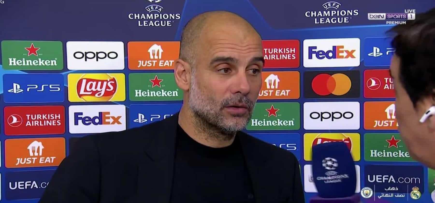 وطن- ردّ المدرب الإسباني بيب غوارديولا، المدير الفني لفريق مانشستر سيتي الإنجليزي، على سخرية مراسل بين سبورت القطرية جمال جبالي، خلال مقابلة صحفية، بعد انتهاء مباراة ريال مدريد ومانشستر سيتي بالتعادل الإيجابي بهدف لكليهما في منافسات ذهاب نصف نهائي دوري أبطال أوروبا 2022-2023.