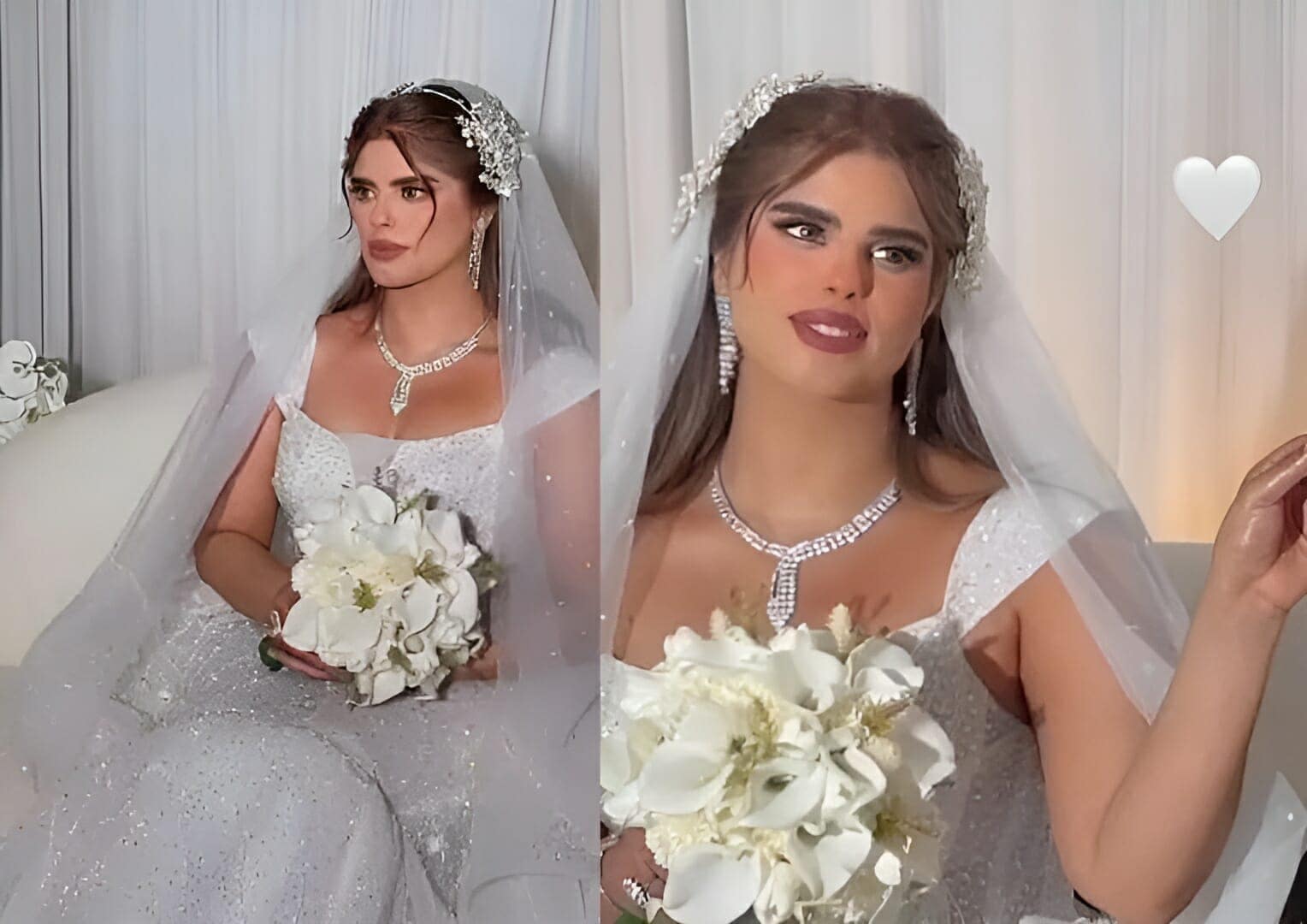 وحرصت منساك في حفل زفافها على إخفاء وجه العريس.