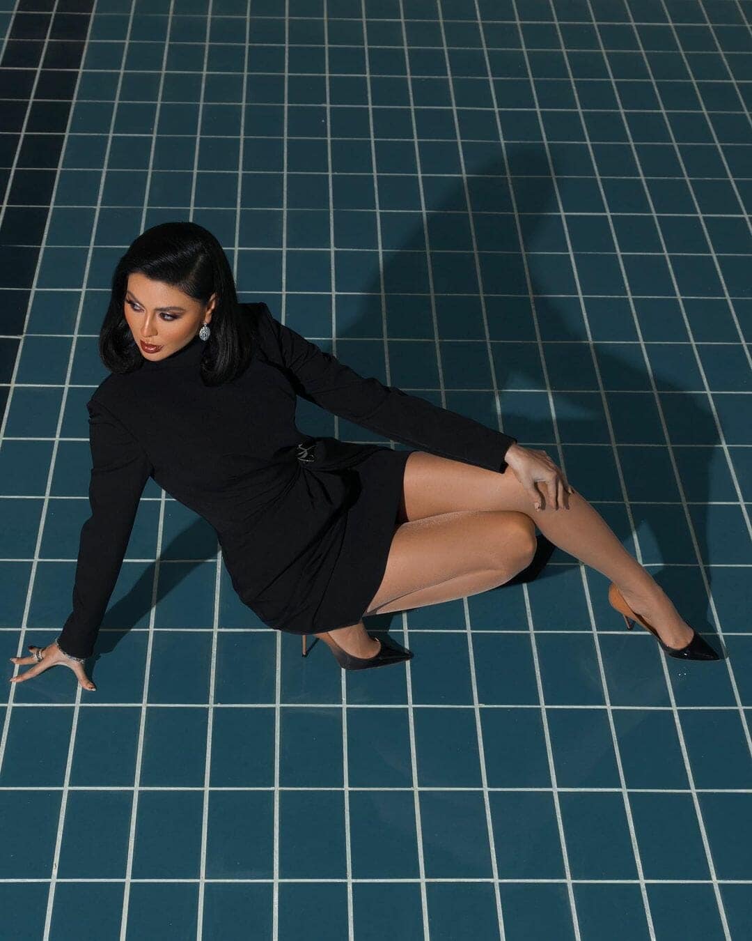 وارتدت مريم حسين، فستاناً قصيراً باللون الأسود، وجلست في إحدى الصور بطريقة تكشف فخذيها بشكل فاضح.