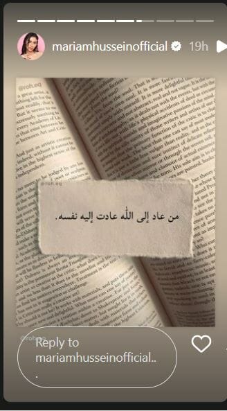 وعبر خاصية الستوري، نشرت مريم قصاصة مكتوباً عليها: “من عاد إلى الله عادت إليه نفسه”.