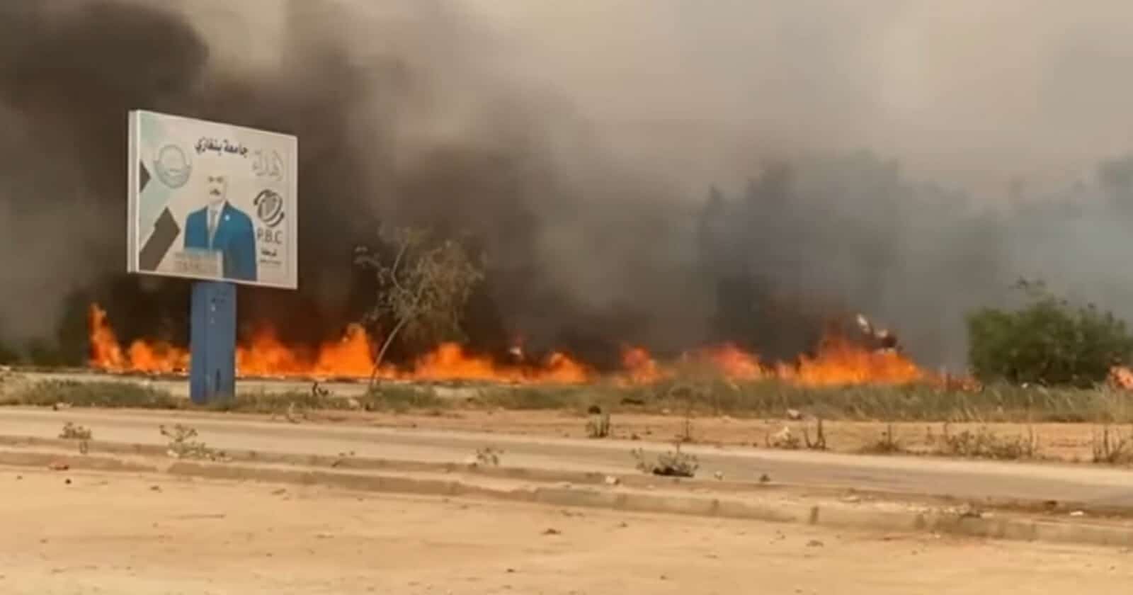 وتزامن نشوب الحريق في جامعة بنغازي مع حريق آخر في منتزه “بودزيرة”، وتمكن الدفاع المدني بنغازي من السيطرة عليه.