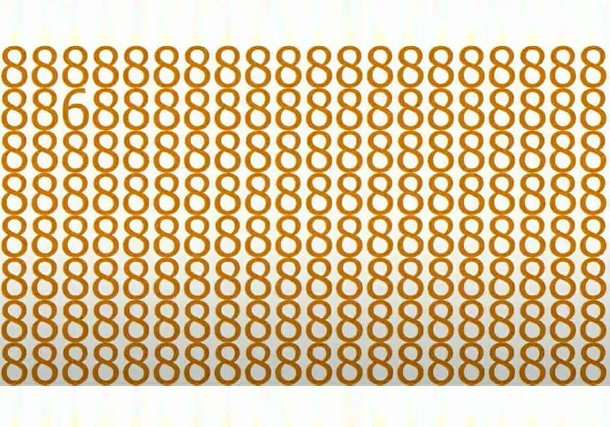 الصورة أعلاه (مأخوذة عن موقع JagranJosh) تُظهر سلسلة من مجموع الأرقام 8، لكن هناك فقط رقم 6 واحد من بين سلسلة كاملة من أرقام 8.