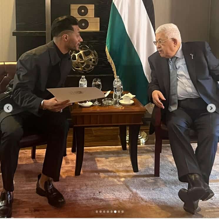 وشارك الممثل المصري محمد رمضان عبر حسابه في إنستغرام، صورة للقاء الذي جمعه مع الرئيس الفلسطيني محمود عباس “أبو مازن”، وعلّق قائلاً: “بنيويورك اليوم تشرفت بلقاء السيد الرئيس محمود عباس أبو مازن رئيس دولة فلسطين الغالية الحبيبة”.
