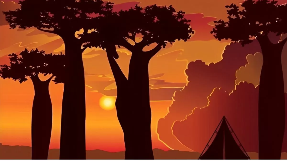 الصورة أعلاه (مأخوذة عن موقع JagranJosh) تُصوّر مشهد السافانا حيث تغرب الشمس.