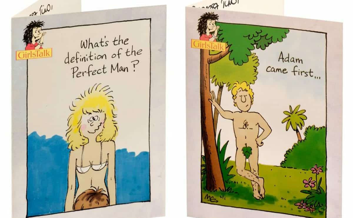 وتم بيع البطاقتين في 17 مايو مقابل 7000 دولار، حيث تضمنت البطاقات البذيئة، وهي جزء من سلسلة بطاقات GirlsTalk من عام 1987 ، رسومًا كاريكاتورية مضحكة للبالغين مع خطوط مثقبة.