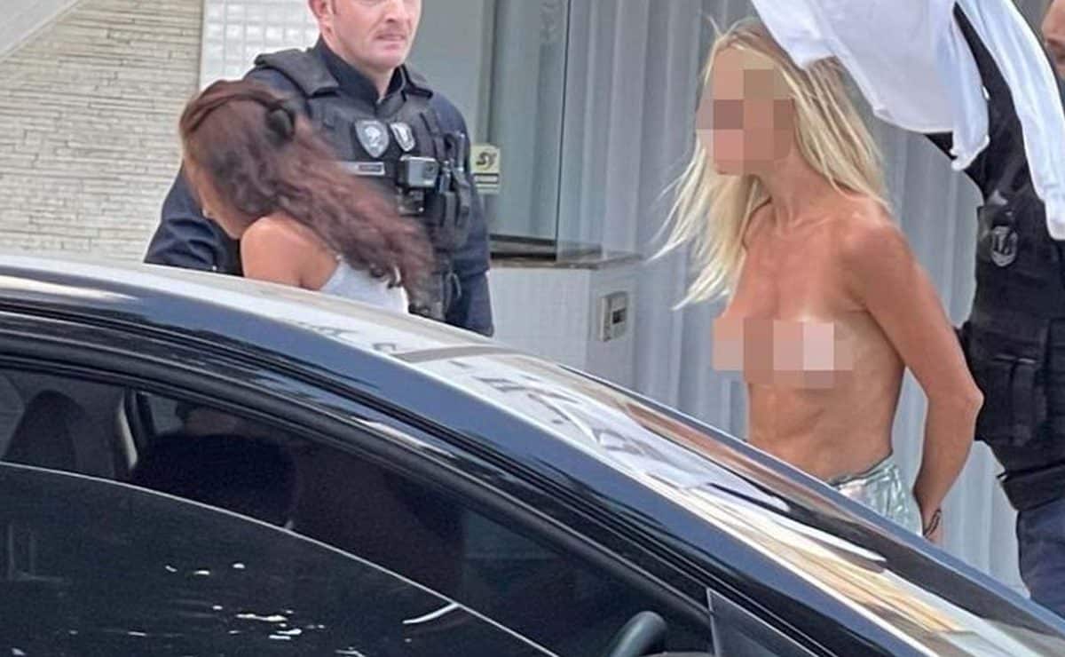 امرأة عارية الصدر تتجول مع كلابها على شاطئ برازيلي وتهاجم الشرطة بالشتائم