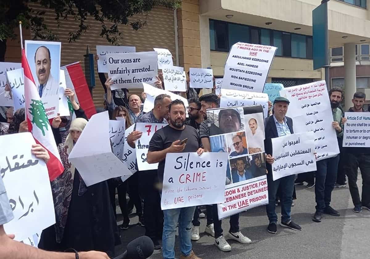 وقبل نحو أسبوع، نظم أهالي المعتقلين اللبنانيين في السجون الإماراتية، وقفةً أمام وزارة الخارجية اللبنانية للمطالبة بتحرك المسؤولين للإفراج عن أبنائهم الموقوفين بعد إعلان وفاة الموقوف غازي عز الدين.